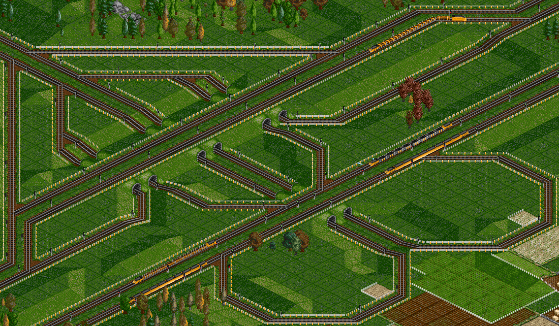 hier werden einige Beispiele von Kreuzungen und Verzweigungen gezeigt. Je nach Situation sollte eine Kreuzung aber ganz individuell gebaut werden. Bei den meisten hier gezeigten Kreuzungen kann der Zug auch von überall her nach überall hin fahren, das ist aber nur selten wirklich nötig.
